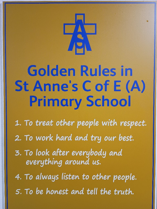 At the beginning of every term, we reset our expectations for behaviour. Here at St Annes, we have five ‘Golden Rules’ that underpin our school values and guide how we learn and work together.
