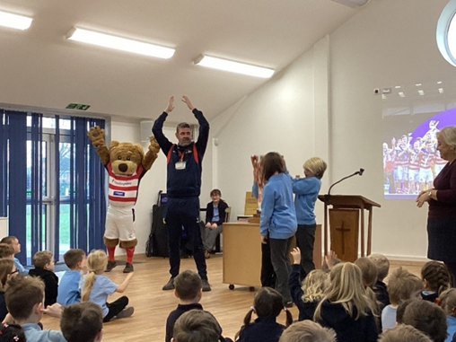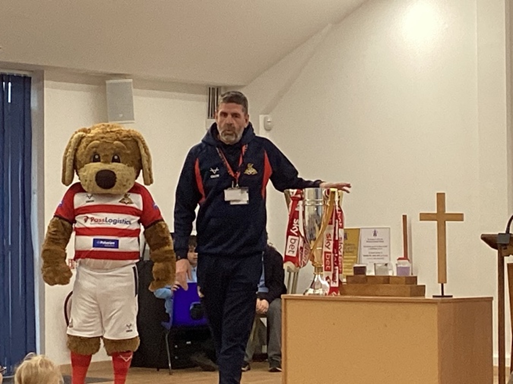 We shared that Donny Dog visited – here are a few pictures of our pupils lifting the trophy!